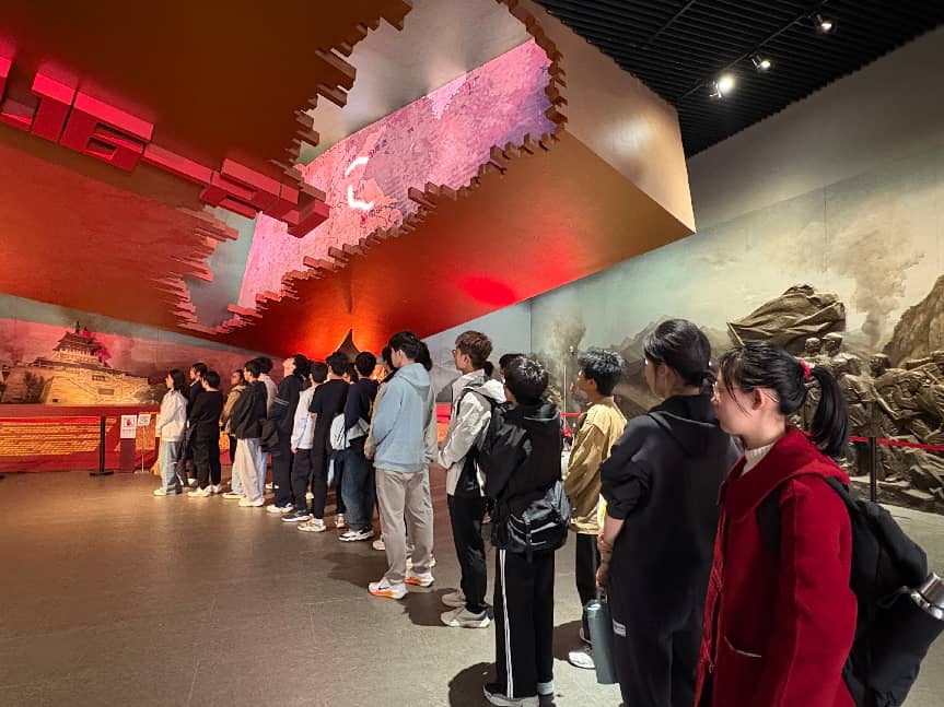 下午3时许,学院师生怀着崇敬的心情步入庄严肃穆的济南战役纪念馆。在讲解员的带领下,大家依次参观了“和战博弈 生死较量”“运筹帷幄 剑指济南”“八天八夜 鏖战古城”等主题展厅。在全景画馆,大家一起沉浸式体验了当时攻城的激烈场景,炮火轰鸣、硝烟弥漫的模拟画面让师生们仿佛置身于当年的战场之中,感触更加深刻。